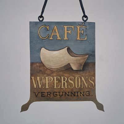 - BeschrijvingVoorstelling van gele klomp. Opschrift: CAFE/ W. PERSONS./ VERGUNNING Uitstekende hoekornamentenNummer acht van de afbeeldingen op de muur in het stadhuis in 's-Hertogenbosch; doodsbed van koning Lodewijk de Heilige. Met opschrift: Beau Sire,