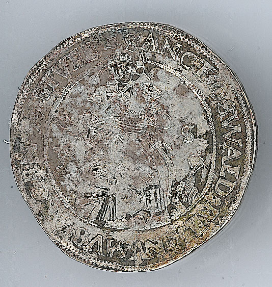 Voorzijde: binnen een parelrand het geharnaste beeld van de heilige Oswaldus ten halve naar rechts, een gesloten kroon op het hoofd en een scepter in de rechter hand. Het borstbeeld wordt geflankeerd door de waarde-aanduiding 30-S, met een omschrift. Om het geheel een parelrand.
