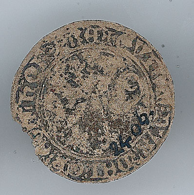 Keerzijde: een lang gevoet kruis dat door een parelrand steekt. In de kwartieren twee wapens van Beieren en twee Hollandse leeuwen paarsgewijs tegenover elkaar, met een omschrift. Om het geheel een parelrand.