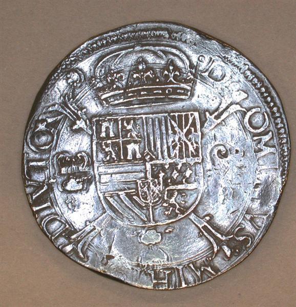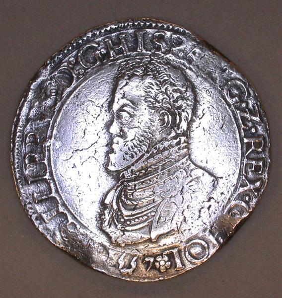 Voorzijde: binnen een getrokken rand een buste van Philips II, met een omschrift. Om het geheel een parelrand.