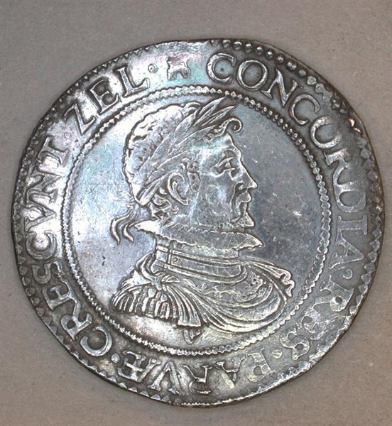 Voorzijde: Binnen een parelrand het gelauwerde borstbeeld van Leicester naar rechts. Omschrift: CONCORDIA.RES.PARVAE.CRESCVNT.ZEL.[toren]. Om het geheel een parelrand.