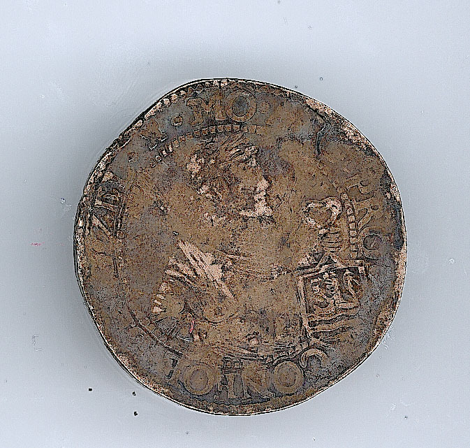 Voorzijde: Binnen een parelrand een geharnaste man ten halve lijve, het geheven zwaard over de rechterschouder, in de linkerhand een lint waaraan het Zeeuwse wapen hangt. Omschrift: .MO.ARG.PRO-CONFOE.[BEL]G.ZEL.[toren]. Om het geheel een parelrand.