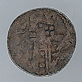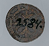 - BeschrijvingVoorzijde: Gemijterde bisschop ten halven lijve naar links, met kromstaf. Om het geheel een parelrand. Keerzijde: Binnen een parelrand een kruis, waarvan de voeten in drietanden eindigen. Onleesbaar omschrift.
