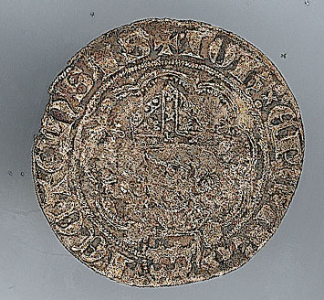 Voorzijde: Binnen een parelrand en een veelpas een gemijterd hoofd 'en face', met daaronder een wapenschild. Omschrift: +10H:EPC:TRA-IECTENSIS. Om het geheel een parelrand.