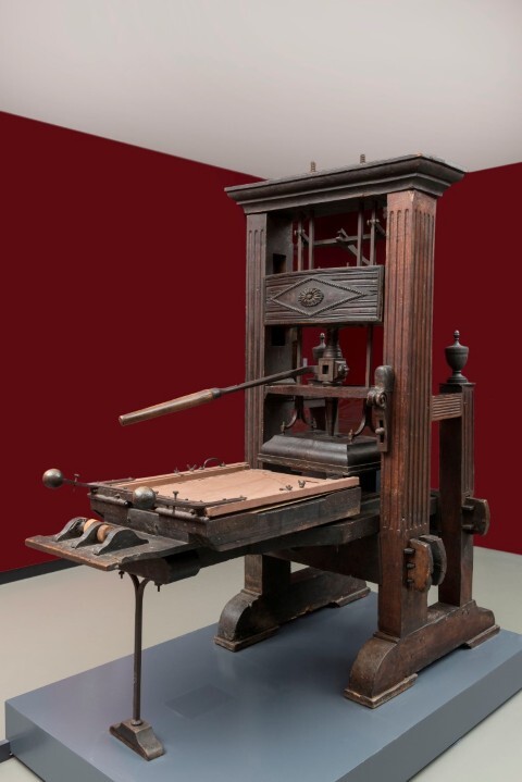 - BeschrijvingDrukpers van Hendrik Palier (1737-1796) en zoon, boekdrukkers en boekhandelaren, gevestigd in het pand de Vijf Vocalen aan de Markt, hoek Kolperstraat, 's-Hertogenbosch.