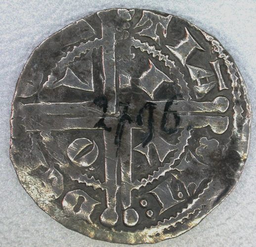 - BeschrijvingSterling van Leuven uit de periode van Jan I. Voorzijde: klimmende leeuw naar links op schild, met daarboven een kruisje; omschrift: D-VX BRABANTI-E. Keerzijde: gevoet dubbellijnig kruis,in de kwartieren binnen een parelrand: L O V I, omschrift: I DEI GRATIA, bloem.