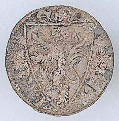 - BeschrijvingSterling uit de periode van Jan I (1268-1294). Voorzijde: klimmende leeuw op een schild, met een omschrift. Keerzijde: Lang gevoet kruis met de letters W A L T binnen een parelrand, met een omschrift.