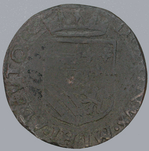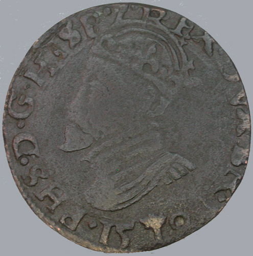 - BeschrijvingVz:gekroonde buste naar links, daaronder het jaartal 15 boompje 94; omschrift: .PHS.D.G.HISP.Z.REX.DVX.BR. Kz:gekroond Oostenrijks-Bourgondische wapen; omschrift: DOMINVS.MIHI.A¬DIVTOR